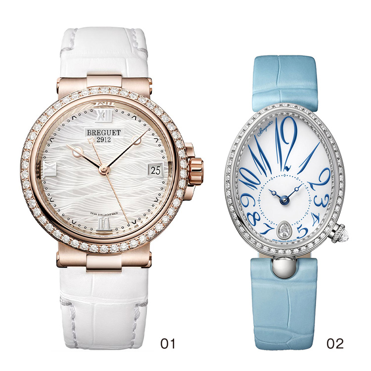 ブレゲブレゲの誕生は1775年。時計の進化を2世紀早めたと称された、天才時計師アブラアン-ルイ・ブレゲによって創業されました。ブレゲ氏の歴代の顧客は、ナポレオン・ボナパルト、ロシア皇帝アレクサンドル1世などの重要人物が名を連ね、なかでも悲劇の女王、マリー・アントワネットから「最高の時計を」と注文を受けたという、たいへん有名なエピソードがあります。ブレゲの時計職人は、今までと変わらぬ入念で精緻な技術で、現代のジュエリー・ウォッチに洗練された女性的なシンボルを創りあげています。
