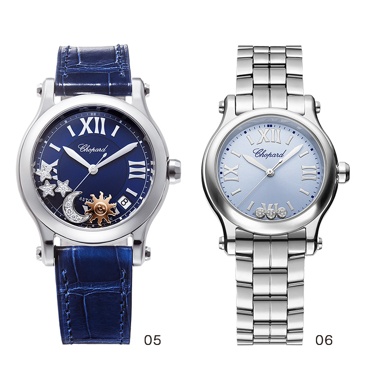 ショパール1860年にスイス・ジュラ地方のソンヴィリエに創業したショパール。高い品質とエレガントな美しさを兼ね揃えた時計・宝飾品の数々は多くの女性たちから支持されています。ハッピースポーツ コレクションは、ショパールの創造性と大胆さを象徴しています。2枚のサファイアクリスタルの間で生き生きと自由に舞う陽気なジェムは、1993年にショパールがスティールとダイヤモンドを組み合わせた初のメゾンとなって以来、イマジネーションを永遠の形に残します。