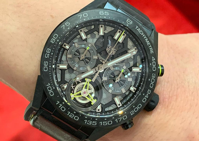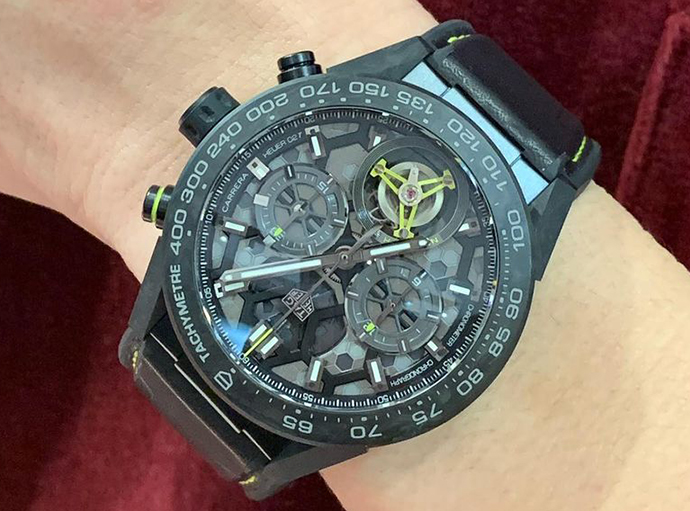 世界初のカーボン製ヒゲゼンマイ使用のトゥールビヨンクロノグラフと言う最強の時計です❗️