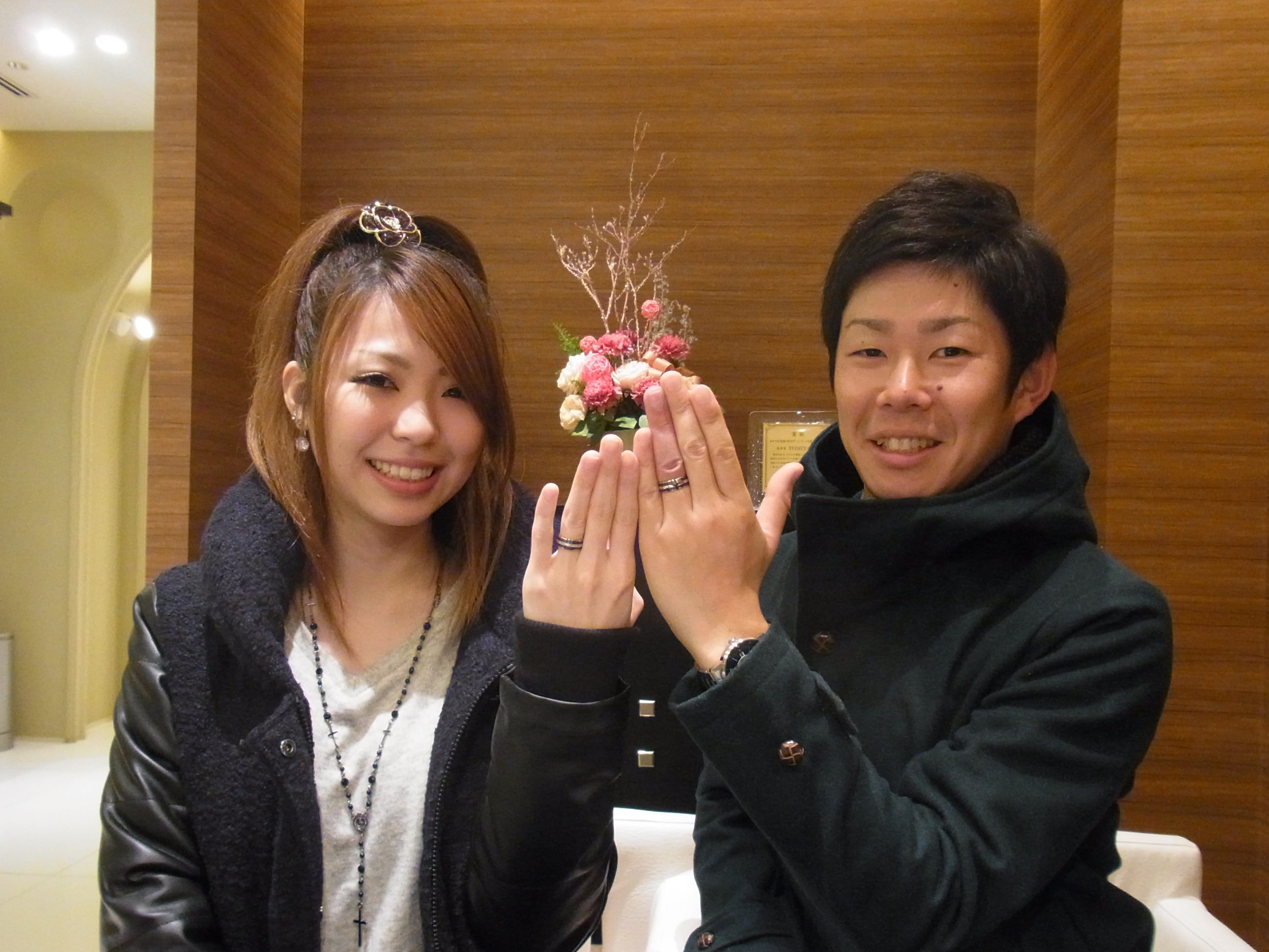 カーボンの素材が珍しく人とは違ったリングがよくて探していたら、カーボンリングに出会いスタッフの「日本初」という一言でカーボンリングに決定しました。